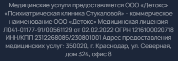 Медицинский центр лечения зависимостей Екатерины Стукаловой в Анастасиевской предлагает избавление от алкогольной и наркотической зависимости. Услуги врача необходимы при получении прав, поступлении в учебные заведения, на службу, а также во время прохождения освидетельствования. Записаться на прием к врачу можно по телефону или на официальном сайте.